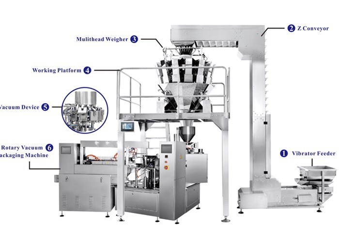 Ryż, który korzysta z pakowania próżniowego lub w zmodyfikowanej atmosferze, może zachować świeżość produktu przez dłuższy czas i przyciągnąć uwagę konsumentów dzięki bardziej atrakcyjnemu wizualnie opakowaniu.Nasze maszyny poprawiają wydajność, co skutkuje wyższą i bezpieczniejszą produkcją Twojego produktu.Zastosowaliśmy nasze zautomatyzowane systemy pakowania w praktycznie każdej branży - elektronice, przemyśle, żywności, medycynie i pakowaniu kontraktowym, by wymienić tylko kilka.Nadszedł czas, aby zwiększyć produkcję, poprawić bezpieczeństwo pracowników i produktów oraz obniżyć koszty dzięki naszym niedrogim zautomatyzowanym systemom pakowania.Obrotowy system pakowania próżniowego i ważenia obejmuje komputerową wagę wielogłowicową, przenośnik Z, platformę roboczą, podajnik wibracyjny, podwójny podajnik, obrotową maszynę do pakowania próżniowego.